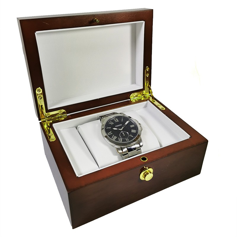 Caseta ceas din lemn natural cu un spatiu Caseta din lemn natural de culoare maro, lacuita. Acomodeaza un ceas in interiorul din piele ecologica alba, cu pernita. Ideala pentru pastrarea unui ceas deosebit sau pentru a fi oferita cadou impreuna cu un …