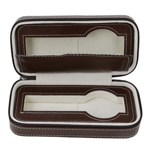 Caseta Transport Ceasuri Piele Ecologica Maro / Neagra 2 Spatii PU80