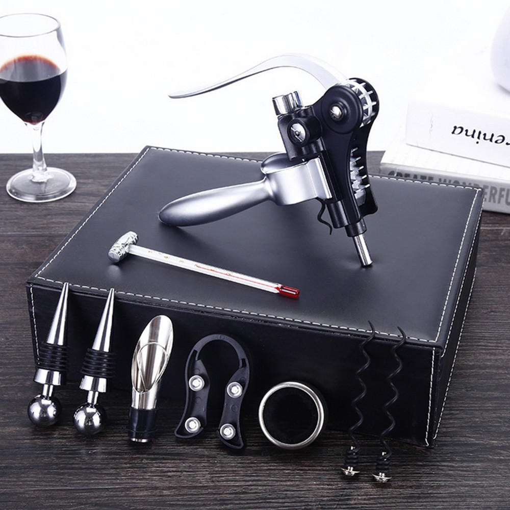 Casetă unelte desfacere sticle de vin – piele ecologică neagrăAdaugă un strop de eleganță momentelor speciale cu această casetă premium pentru unelte de vin, realizată din piele ecologică neagră de înaltă calitate. Concepută pentru pas…