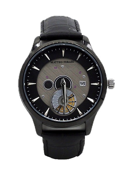 Ceas Barbatesc Original Matteo FerariCarcasa neagra, cadran negru cu argintiuCurea din piele naturala neagraMecanism Quartz – Japan Mov…