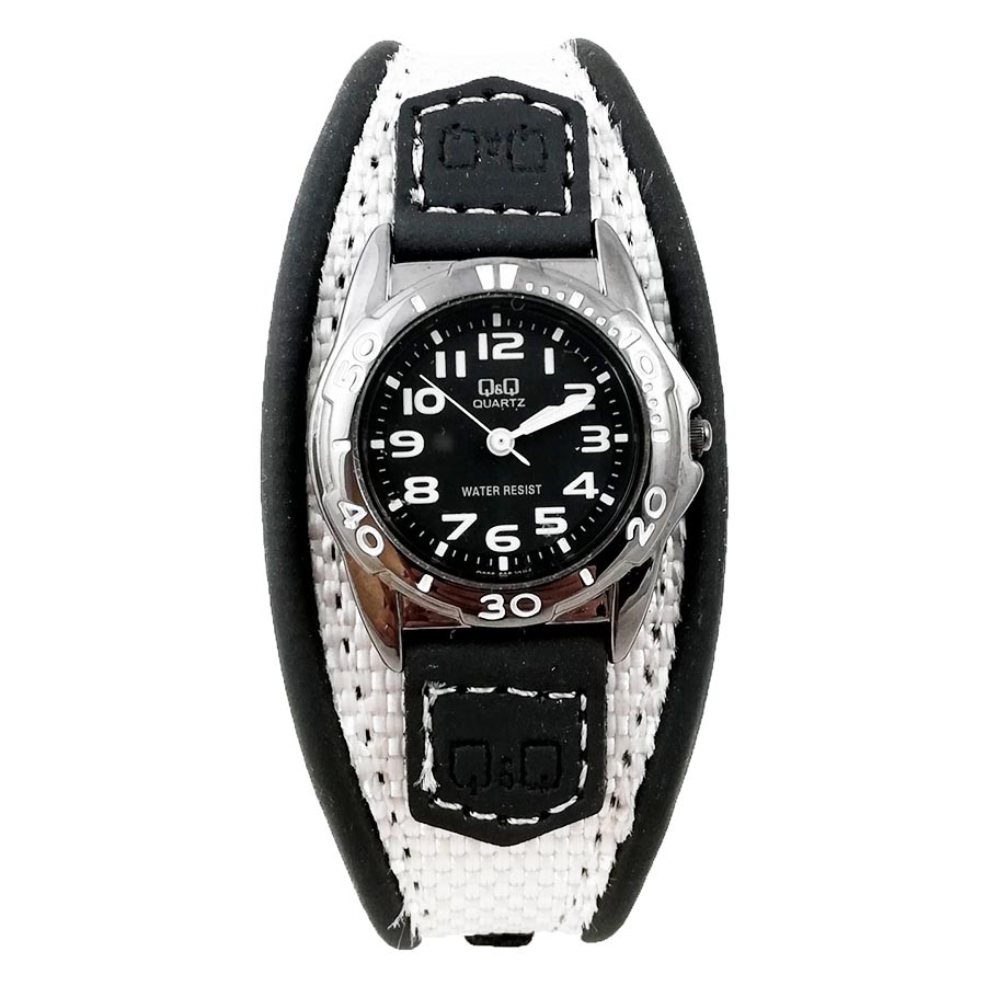 Ceas original Q&QCeas de damăAlb și negruCurea din piele eco și material texti…