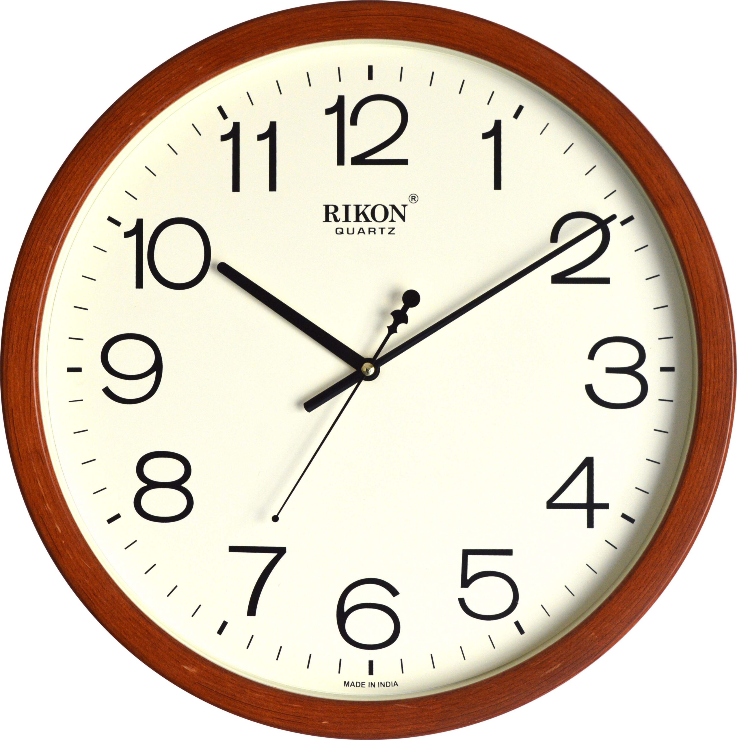 Ceas de perete original RIKONBaterie inclusăDesign clasicRamă maro și cadran be…