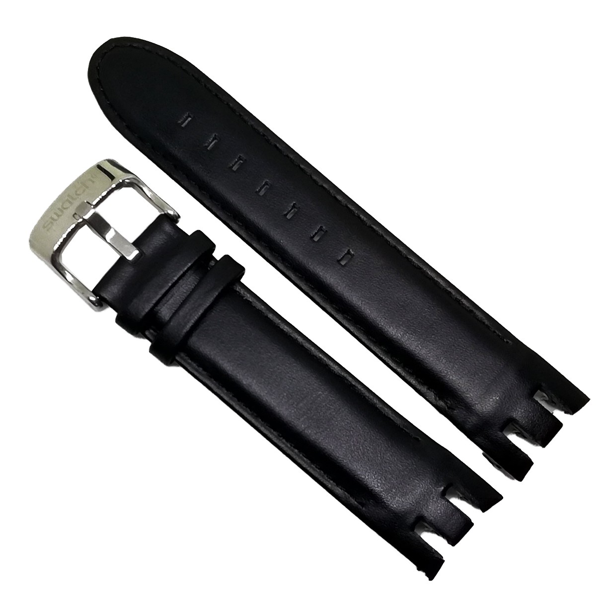 Curea de ceas SwatchPiele naturala neagra, textura mataCatarama otel inoxidabil, inscriptionata `Swatch…