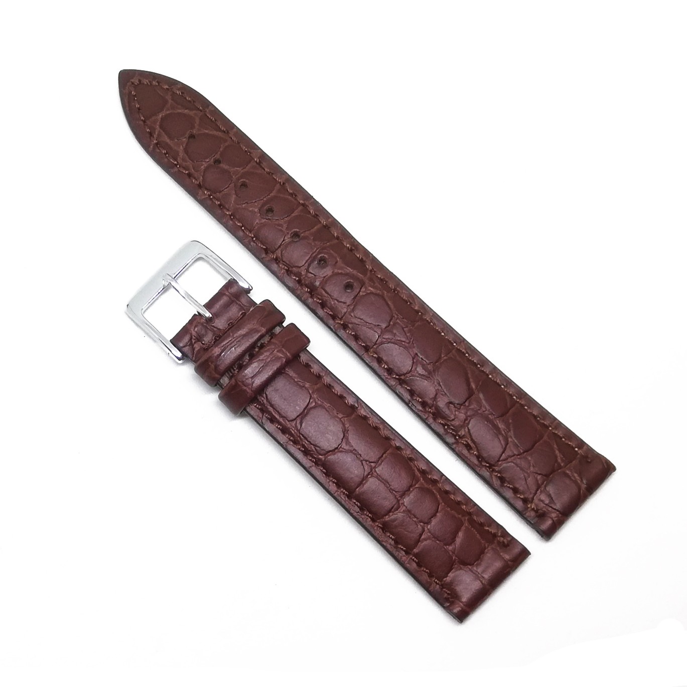 Curea de ceas din piele naturalaCuloare maro, imprimeu sarpeCatarama argintie din otel inoxidabi…