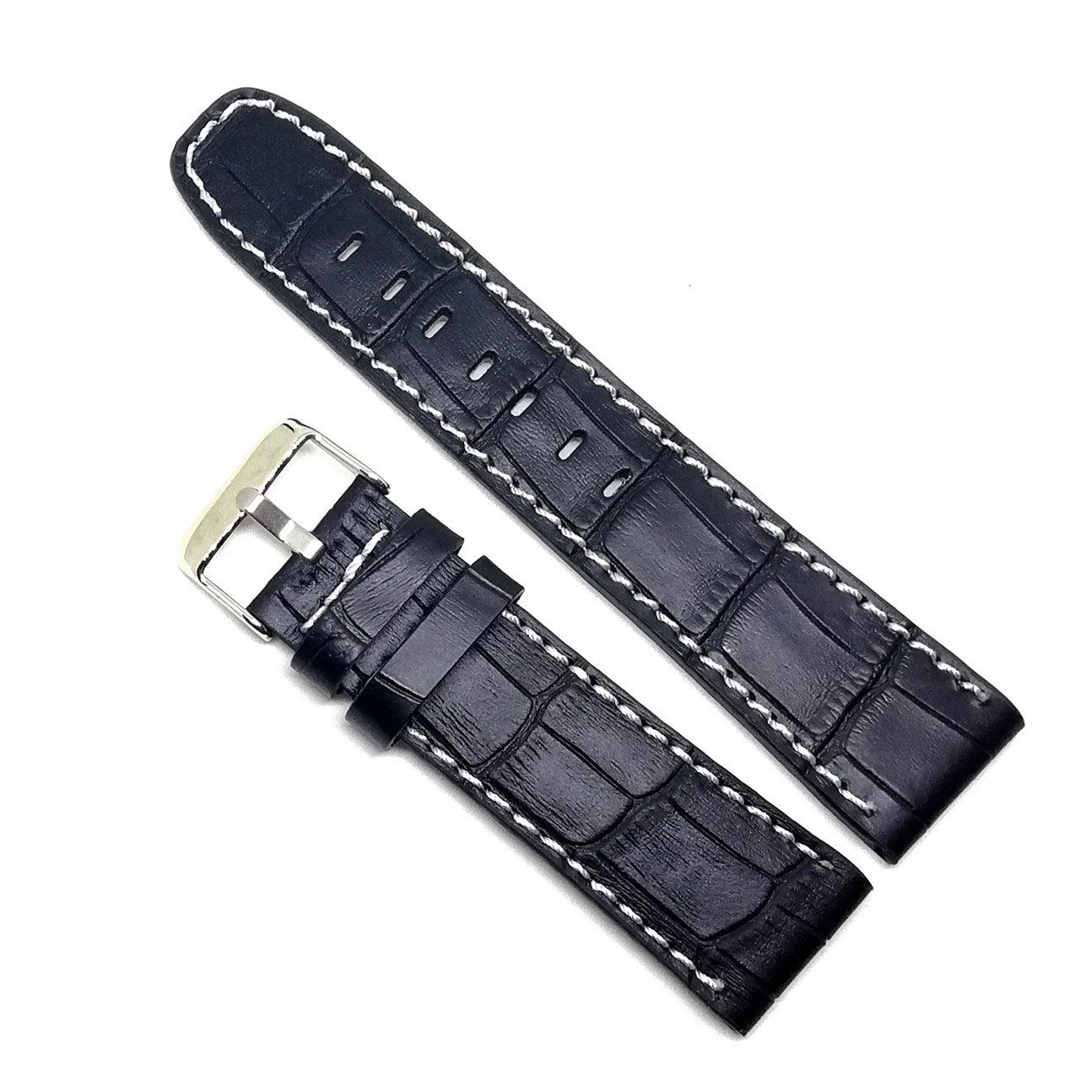 Curea Ceas „Cross-Grain” C3025 – Piele Naturală Neagră cu Textură Modernă (18mm – 24mm)