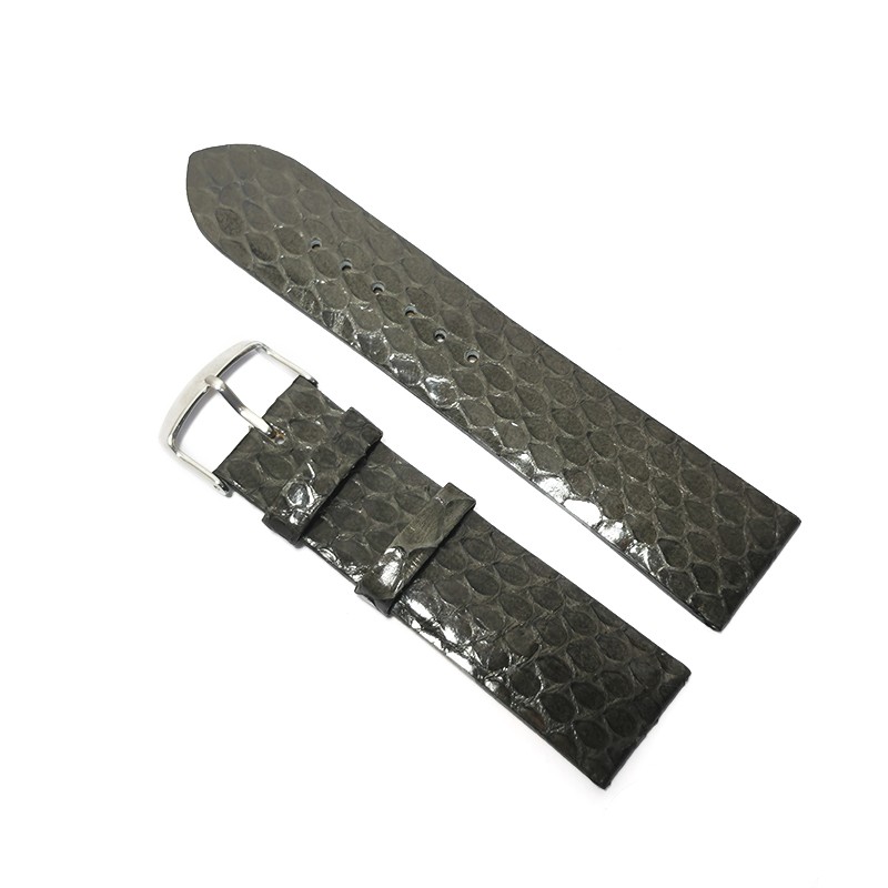 Curea de ceas din piele veritabila de sarpeRealizata din piele naturala la interior si piele de sarpe la exteriorCatarama clasica din otel inoxidabil de culoare argintie -Hand Made-MADE IN ROMANI…