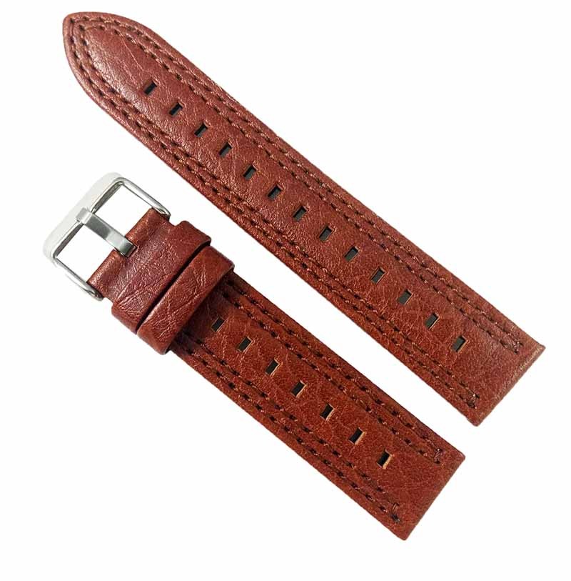 Curea Ceas Piele Naturala Maro 20mm, 24mm Cusatura Dubla WZ2157