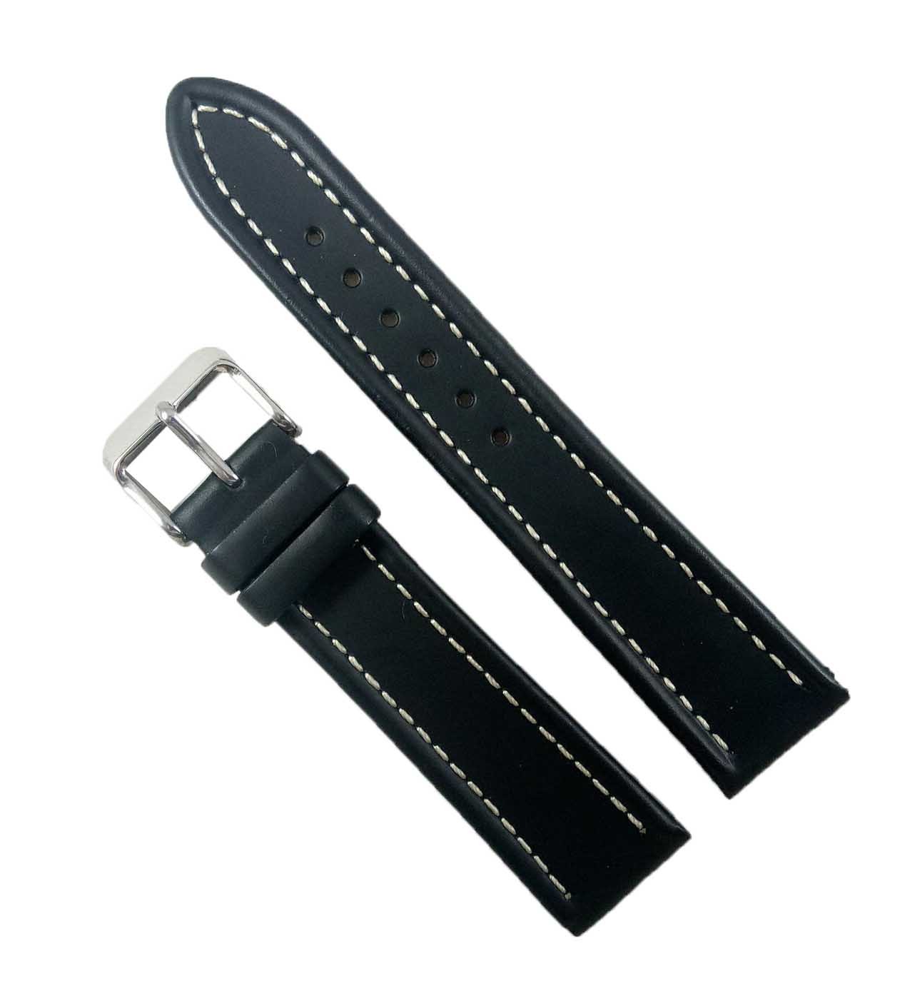 Curea Ceas Piele Naturala Neagra Cusatura Alba Casual 18mm, 20mm WZ2307