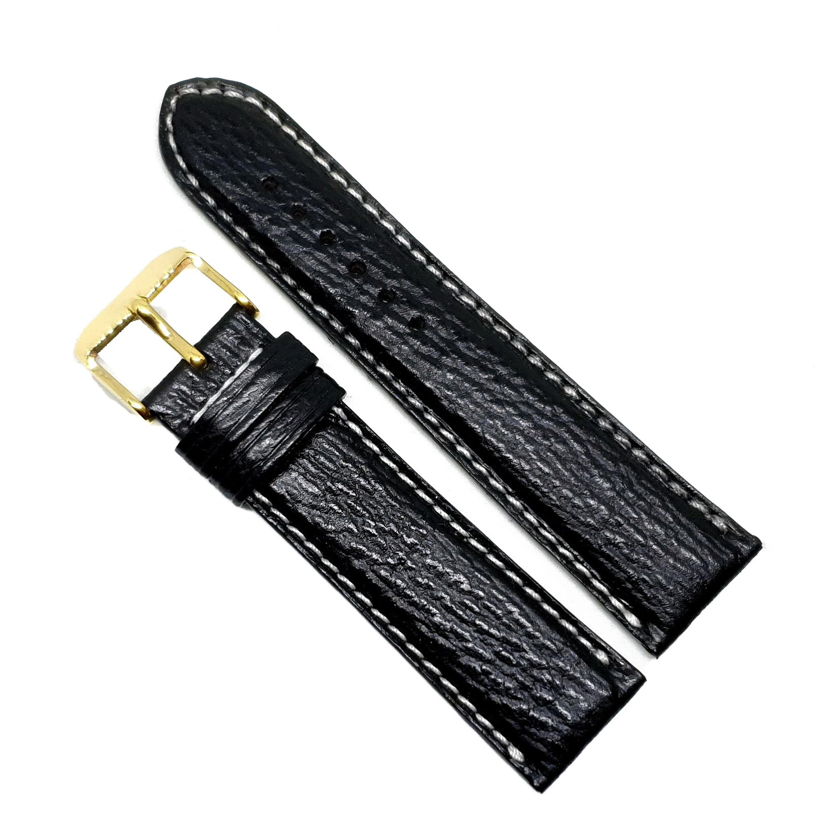 Curea Ceas „Shark Ocean” Fleurus – Piele Veritabilă de Rechin, Negru cu Cusătură Albă (18mm – 22mm)
