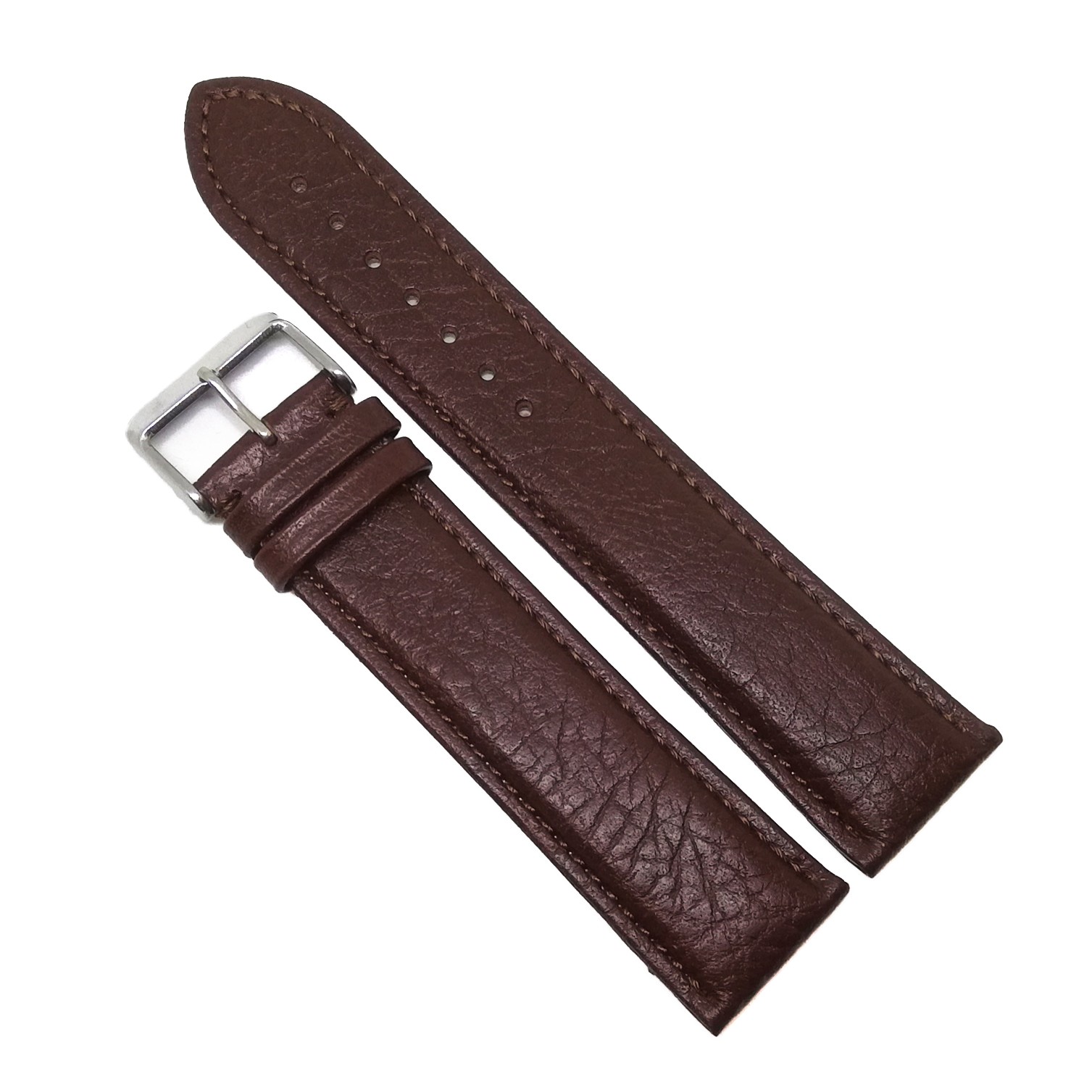 Curea de ceas din piele naturalaLungime XXLCuloare maro, textura bizonataCatarama argintie din otel inoxidabi…