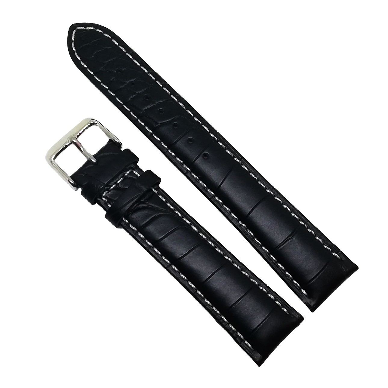 Curea pentru ceas din piele naturalaCuloare neagra si cusatura albaLungime XLInchidere catarama otel inoxidabi…