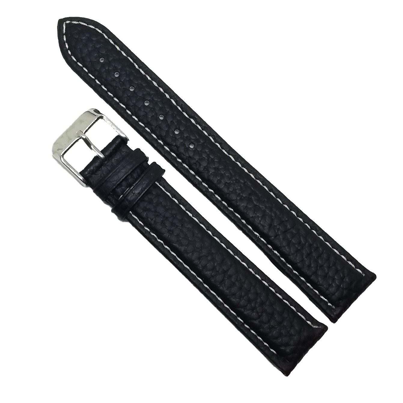 Curea pentru ceas din piele naturalaCuloare neagra si cusatura albaLungime XLInchidere catarama otel inoxidabi…