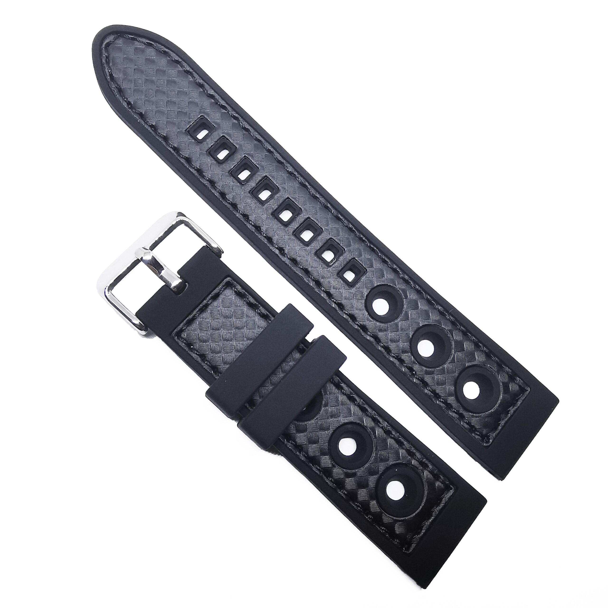 Curea de ceas din silicon, culoare neagraImprimeu carbon, model cu gaureleCatarama clasica arginti…