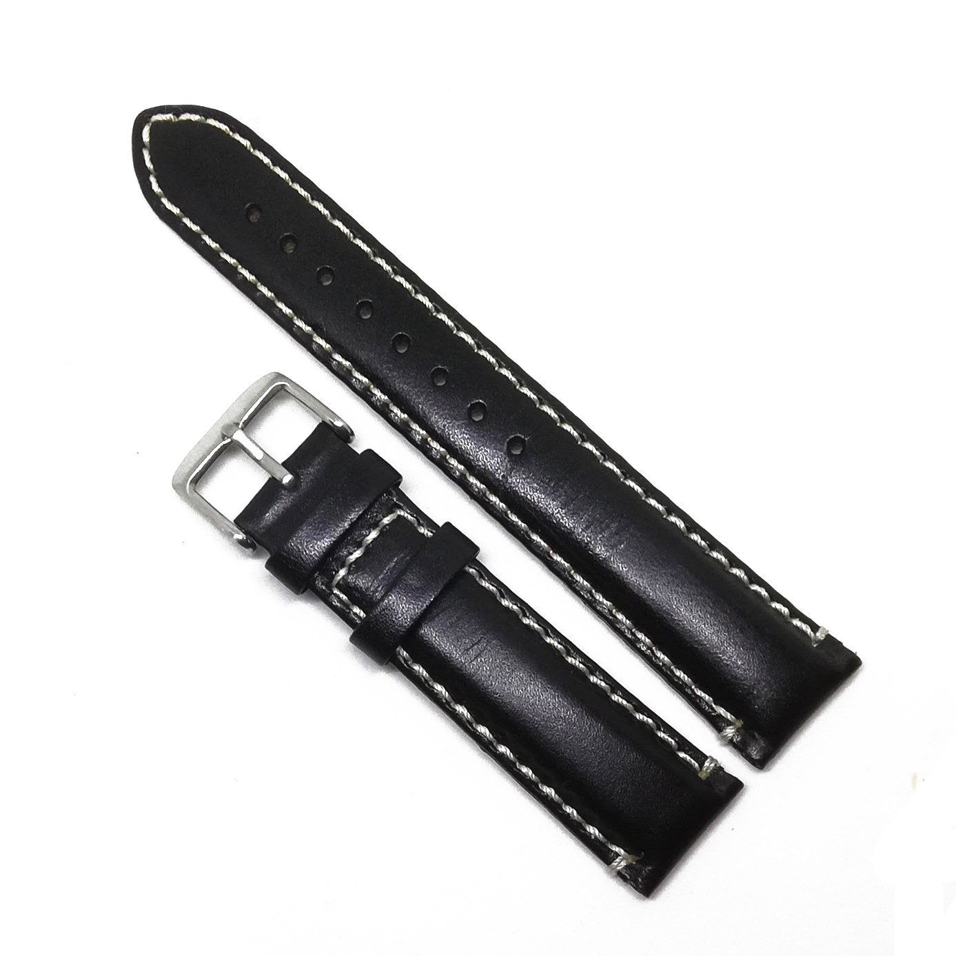 Curea de ceas din piele naturalaCuloare neagra, cusatura albaCatarama clasica otel inoxidabi…