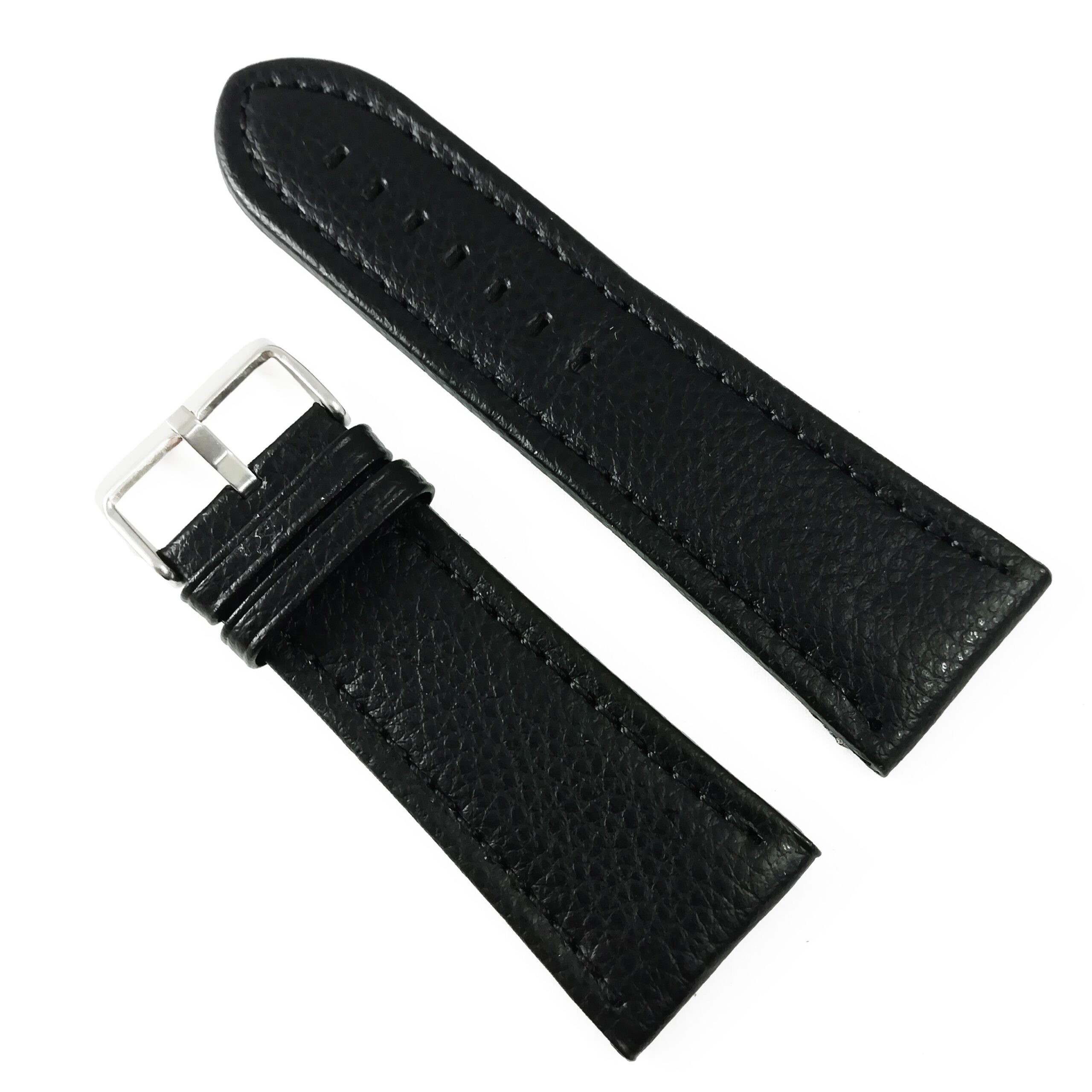 Curea de ceas din piele naturalaLatime mare – 28mm / 30mm / 32mm / 34mmCuloare neagra si textura bizonataCatarama argintie din otel inoxidabi…