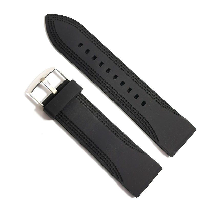 Curea de ceas din siliconCuloare neagraCatarama argintie din ino…