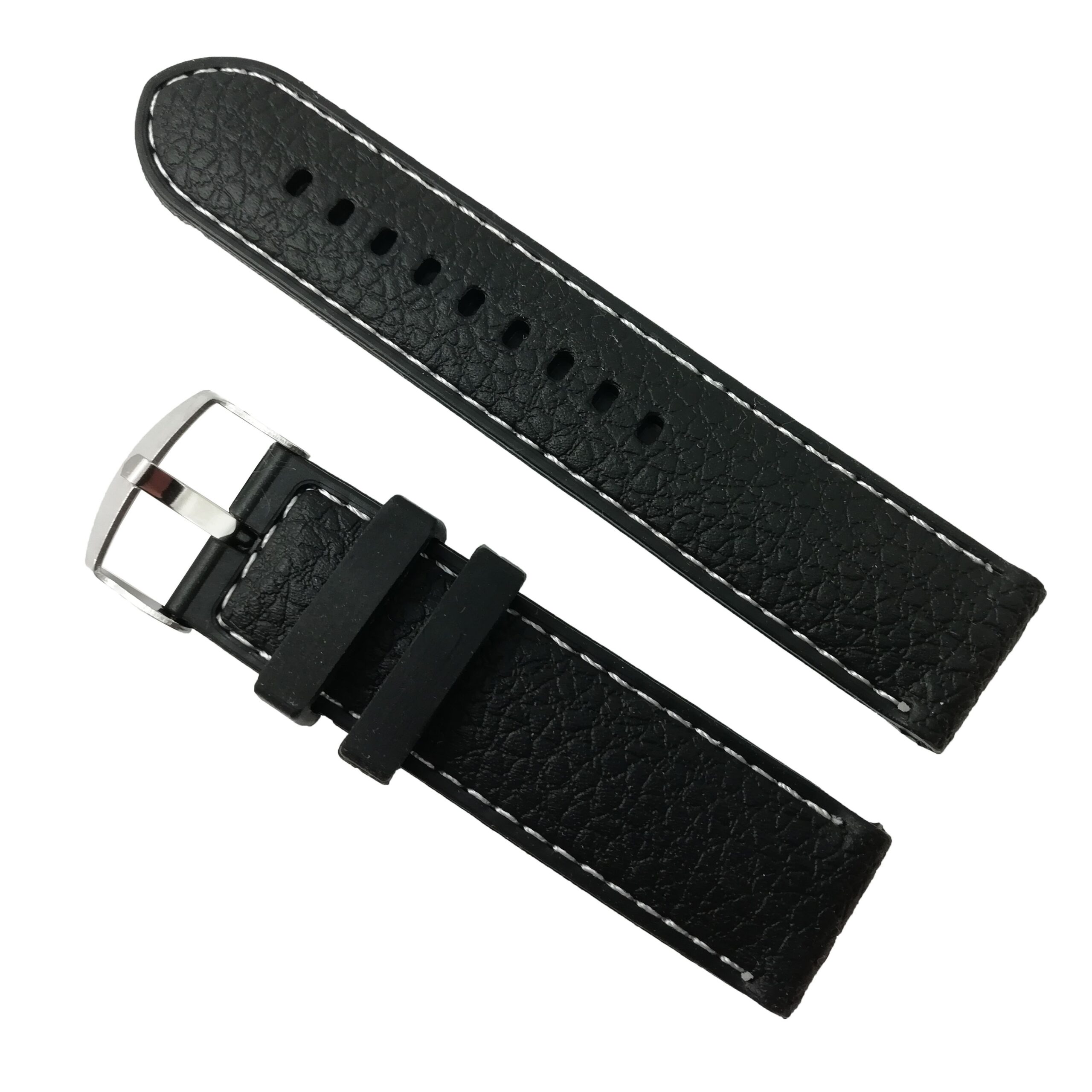 Curea Neagră Silicon, cusătură albă – 22mm