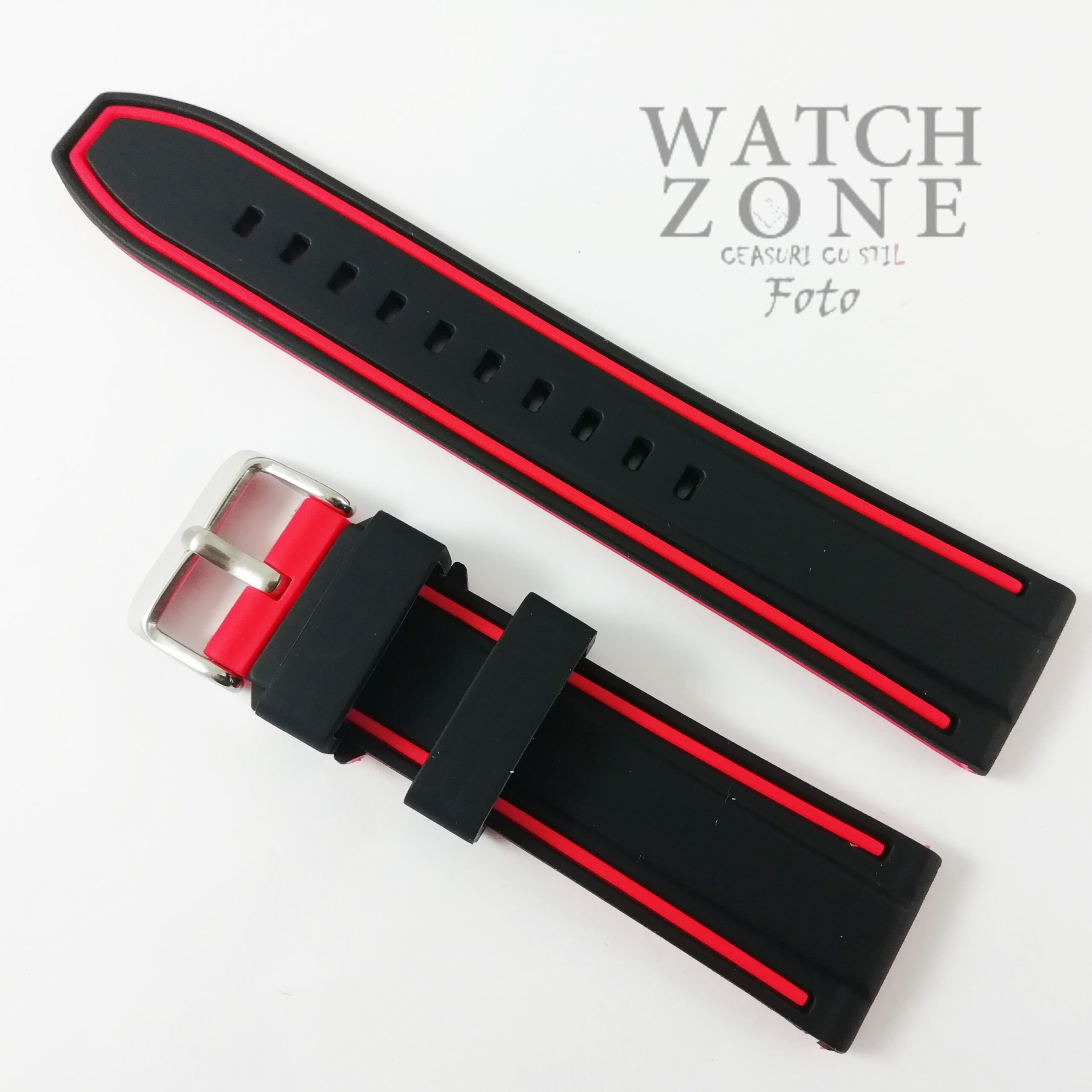Curea de silicon rezistenta Dimensiuni 18mm, 20mm, 22mm, 24mmCombinatie de culori rosu si negr…