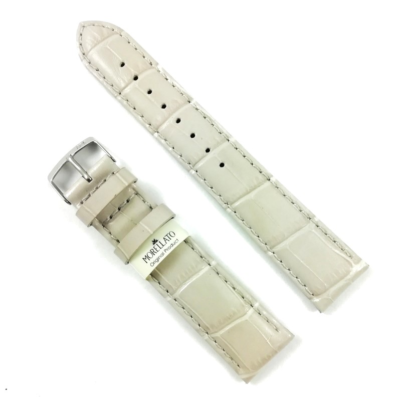 Curea de ceas din piele naturala MorellatoCuloare gri, textura lucioasaImprimeu crocodil, cusatura albaMade in Ital…