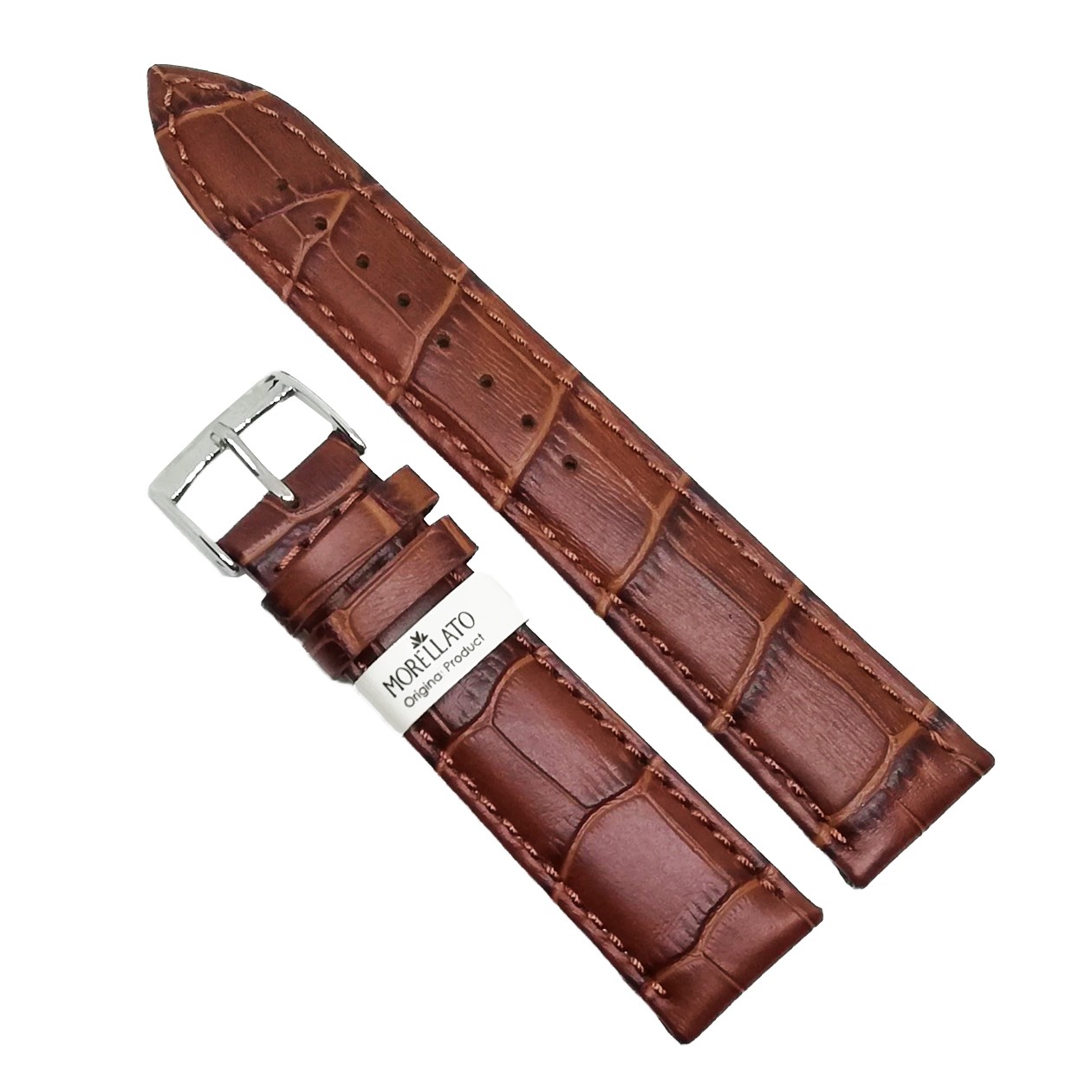 Curea de ceas din piele naturalaProdus original MorellatoCuloare maro si catrarama argintieImprimeu crocodi…