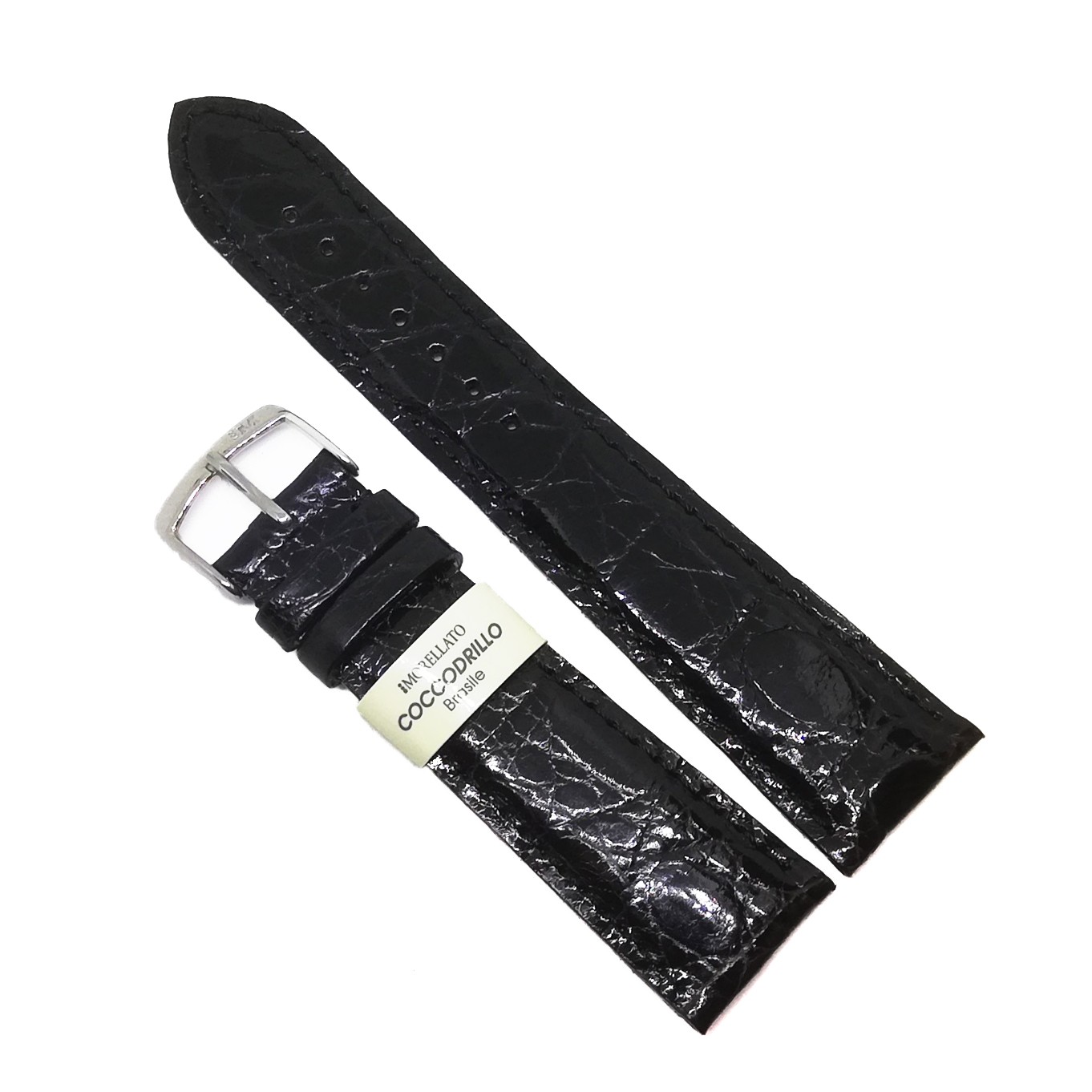 Curea de ceas din piele veritabila crocodilCuloare neagra, textura lucioasaCatarama argintie din otel inoxidabilTara origine – Itali…