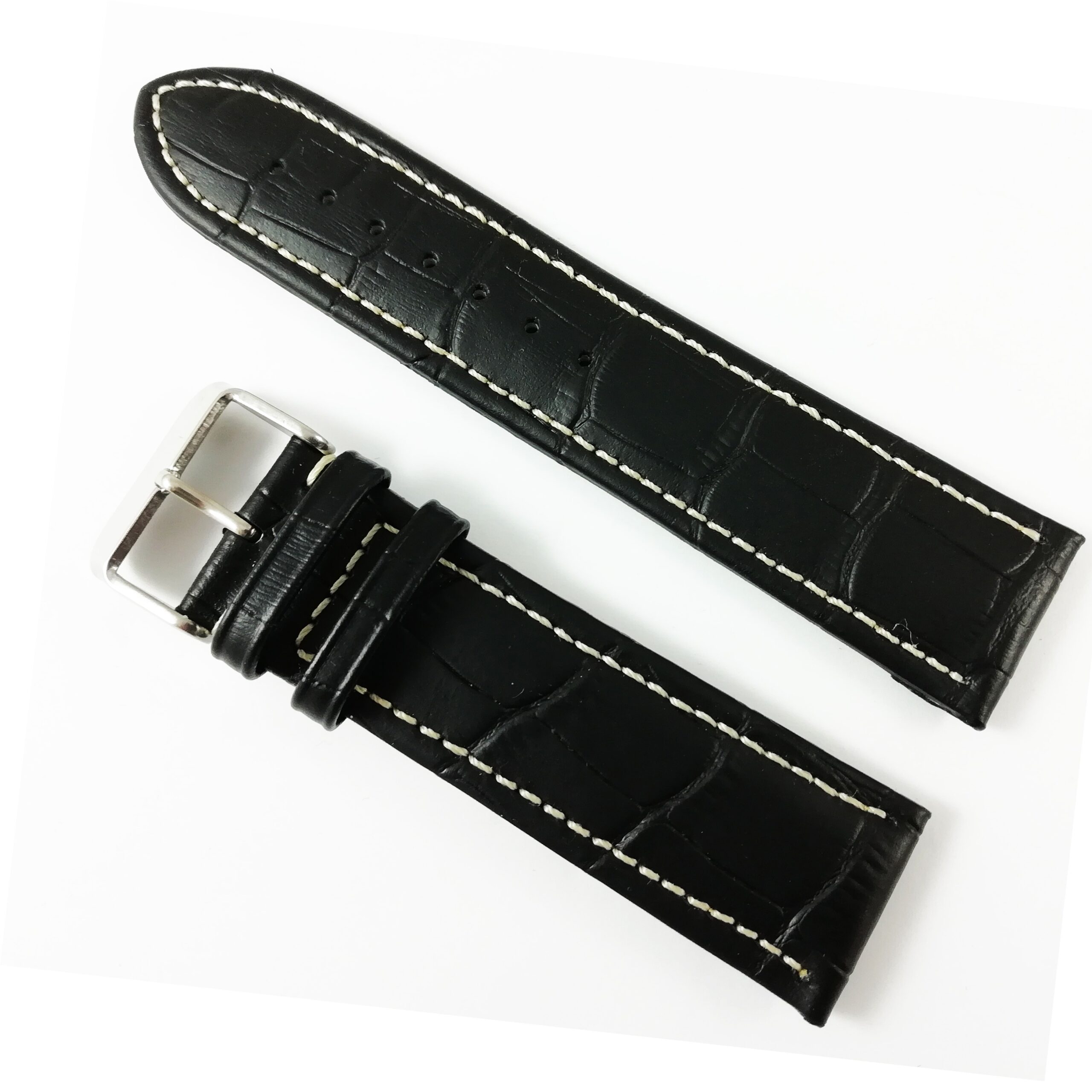Curea Piele Neagră Imprimeu Crocodil – 16mm, 18mm, 20mm, 22mm, 24mm – WZ2688