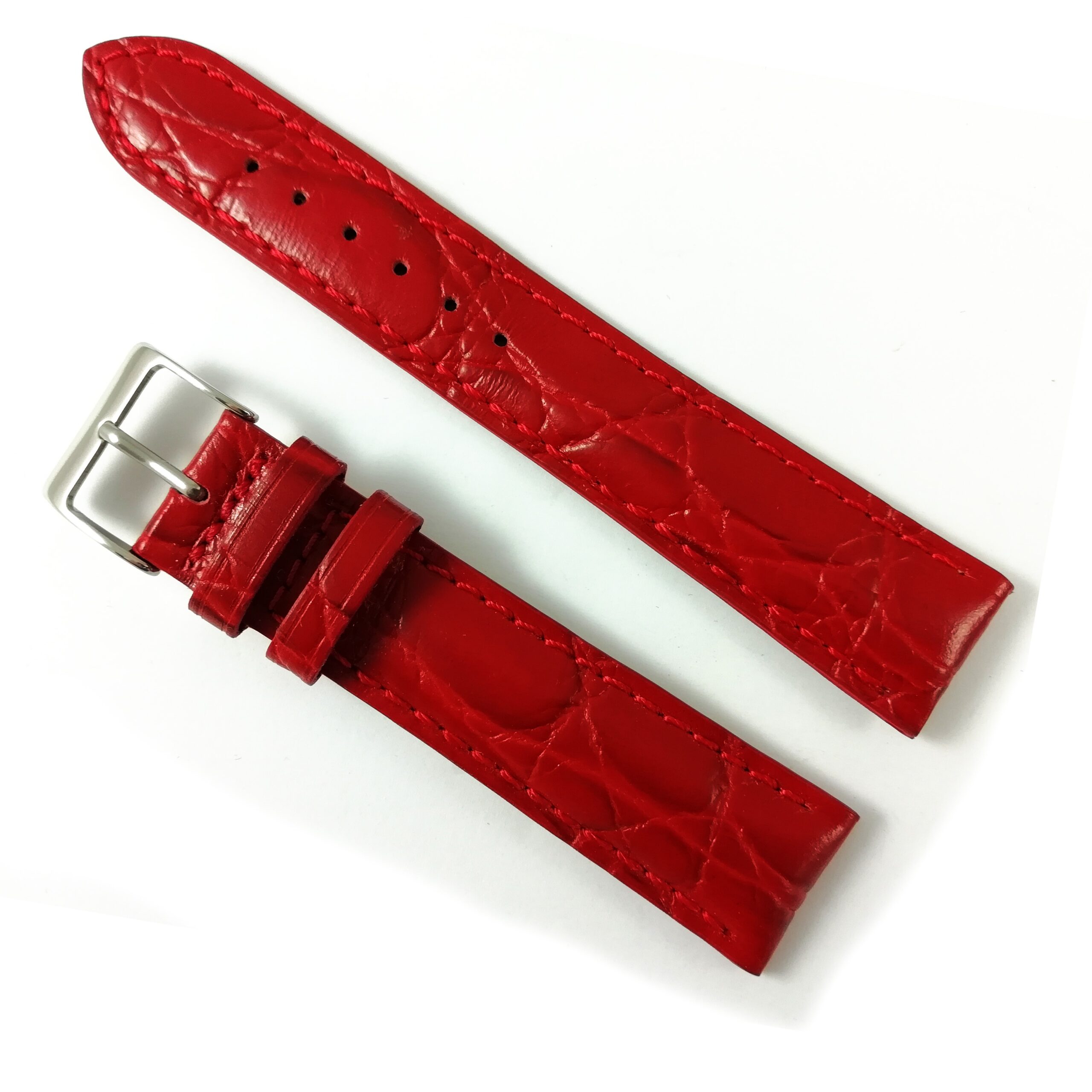 Curea de piele naturală, culoare roșie vie, cusătură roșie și imprimeu crocodil…