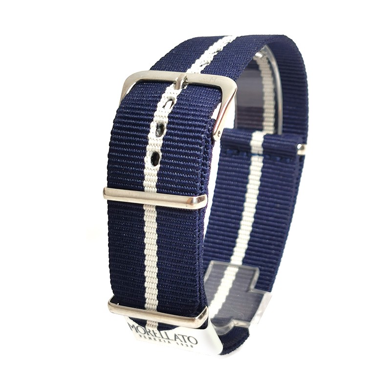 Curea tip NATO Bleumarin cu Alb Morellato Band Fabric Ribbon – 18mm, 20mm, 22mm