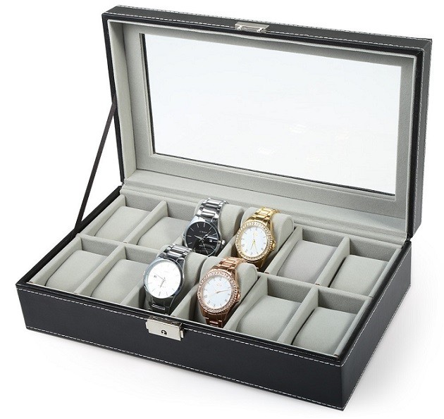 Cutie depozitare ceasuri 12 spatii – Piele Eco