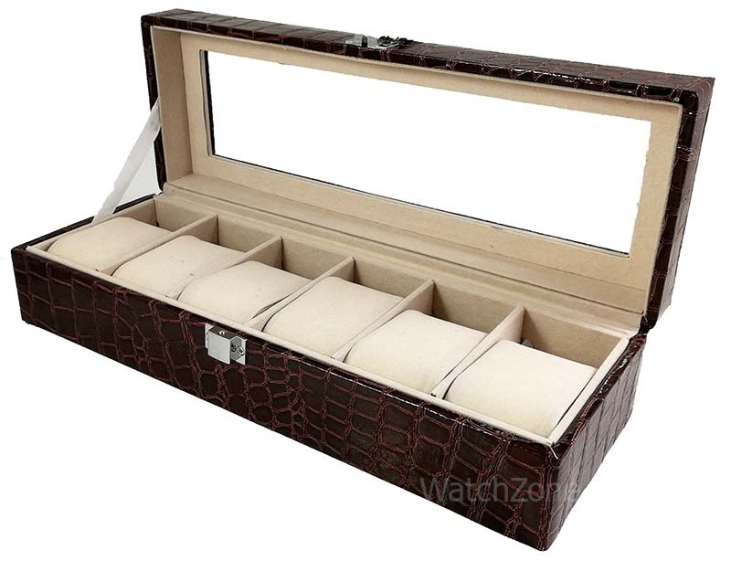 Cutie Depozitare Ceasuri Maro 6 Spatii Imprimeu Crocodil
