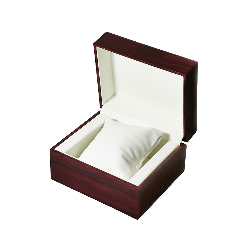 Casetă elegantă din lemn masiv cu finisaj de cireș, lăcuită pentru o strălucire de durată. Ideală pentru protejarea unui ceas special, aceasta oferă un contrast superb între exteriorul roșiatic și interiorul crem deschis. Te așteptăm în…