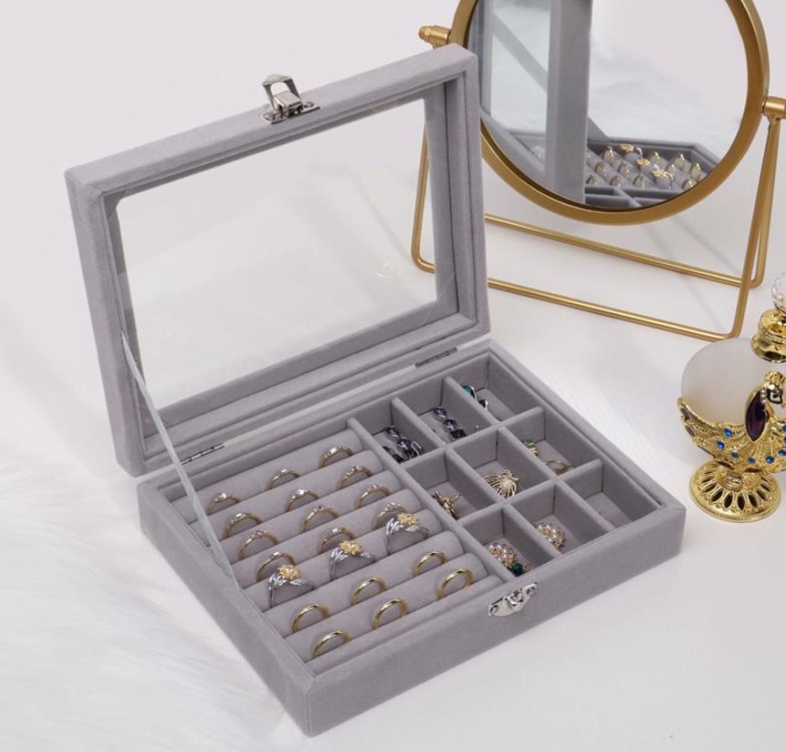 Cutie Gri pentru inele si cercei cu capac transparent WZ5329