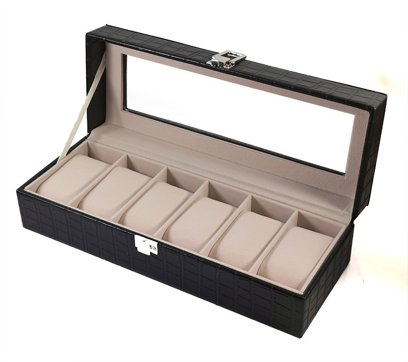 Cutie pentru 6 ceasuriInvelita in piele ecologicaImprimeu Crocodi…