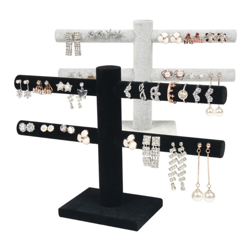 Expozor 2 Brate pentru Inele, Bratari, Lanturi, Bijuterii – Catifea Neagra / Gri – WZ3528