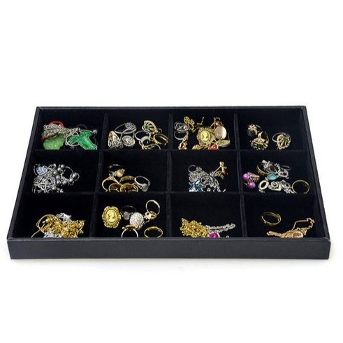 Expozor / Organizator Bijuterii din Catifea Negru / Gri – 23cm – 12 spatii – WZ1446