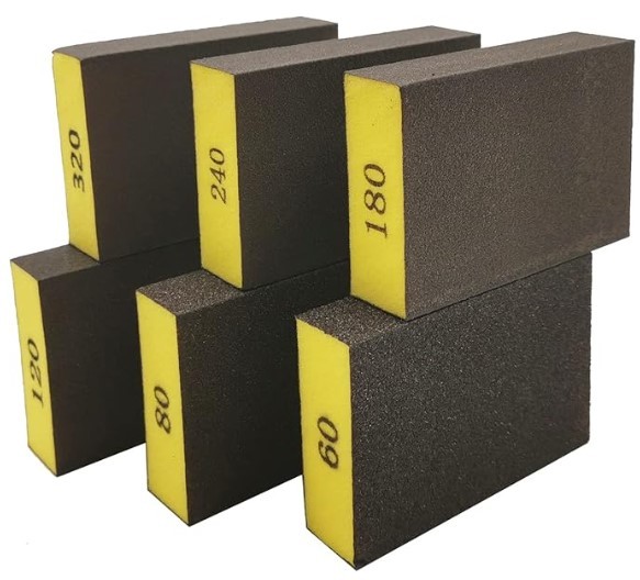 Set profesional de 6 bureți de șlefuit LYFJXX, cu granulații diferite (de la 60 la 320 grit), potriviți pentru lemn, metal, sticlă, piatră și plastic. Reutilizabili, durabili și ideali pentru finisaje fine sau lucrări de reparație…