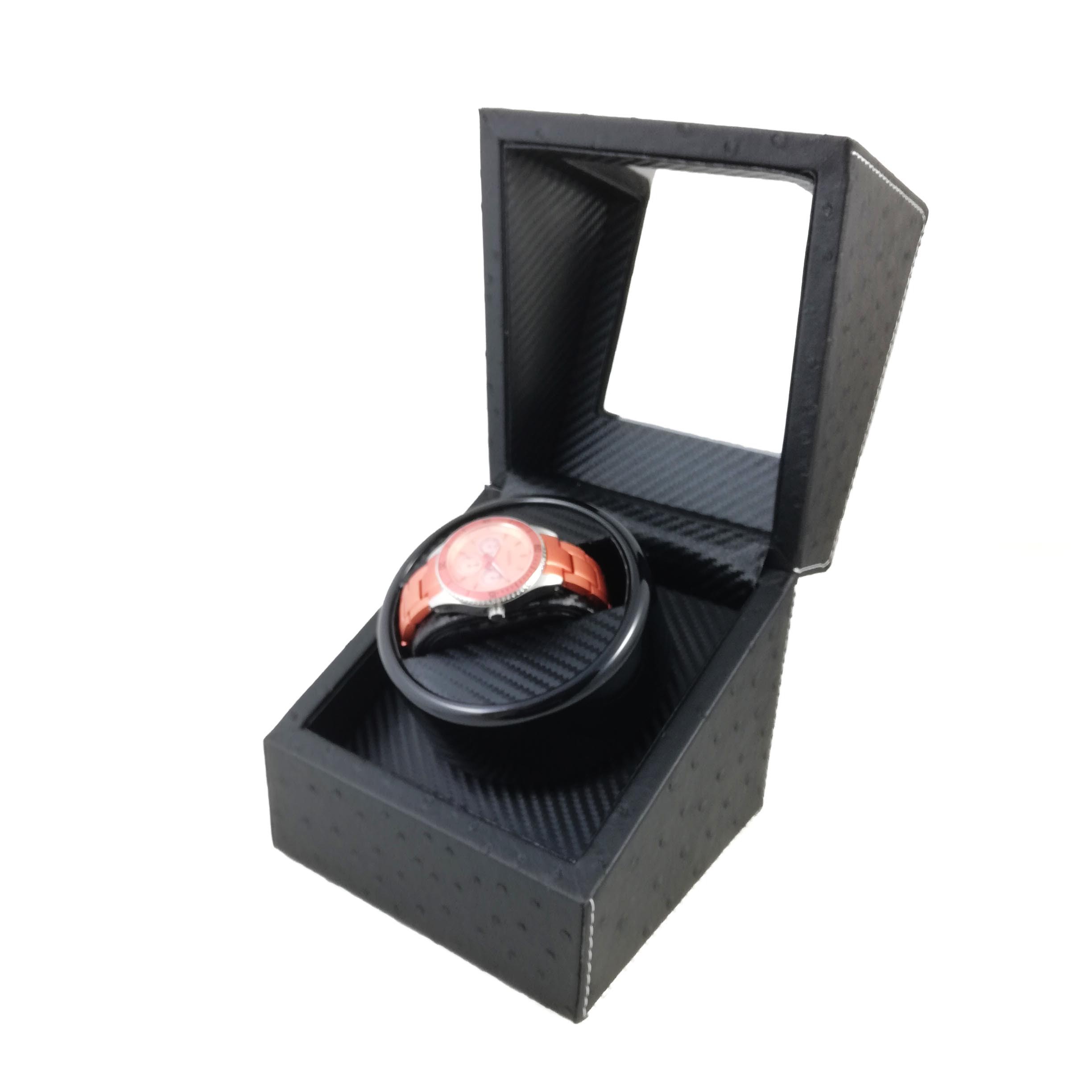 Watch Winder 1 + 0 – Piele Ecologica Neagra cu Imprimeu Strut – WW3903