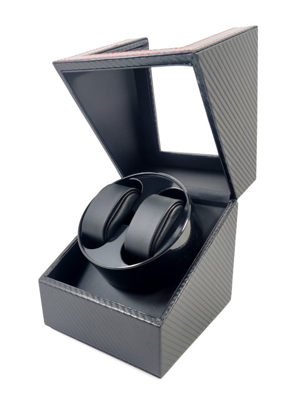 Watch Winder Negru Carbon cu Cusatura Rosie 2+0