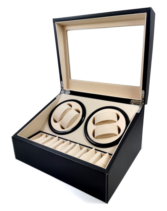 Watch Winder Negru Piele Ecologica 4+6