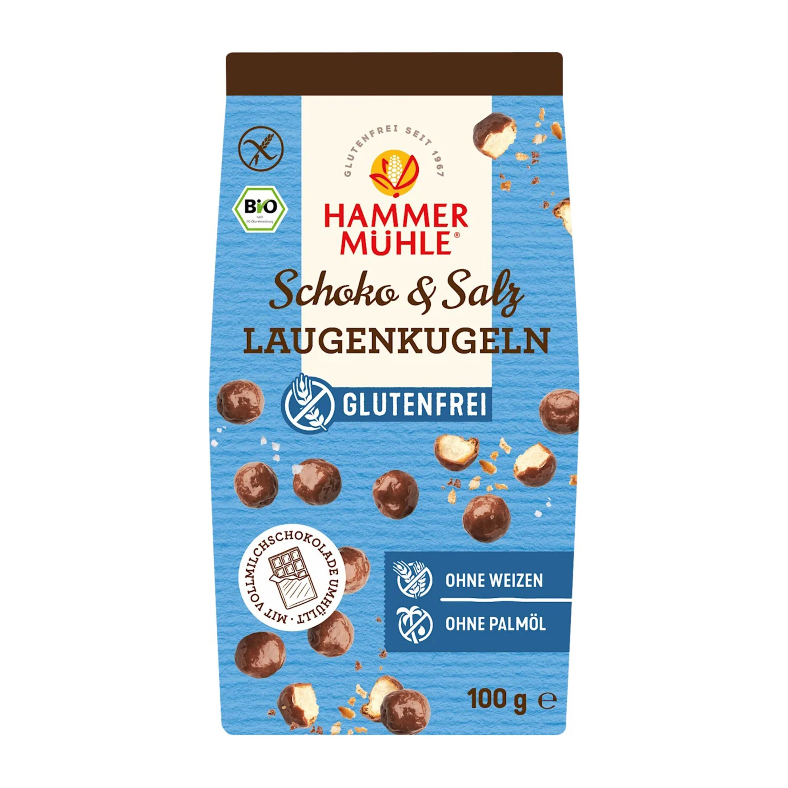 Bilute bio fara gluten, din aluat de Bretzel, trase in ciocolata cu lapte si sare, 100g Hammer Muhle