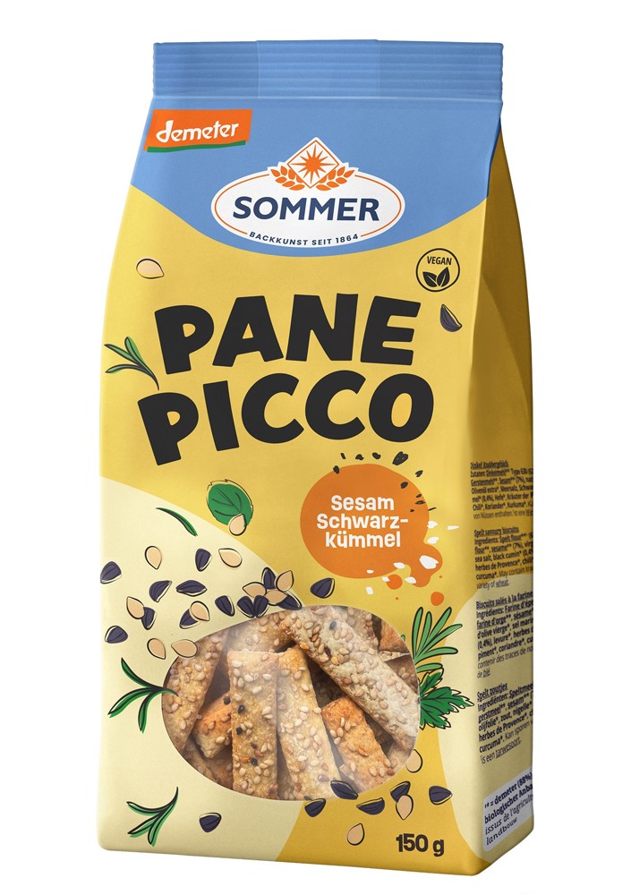 Panne Picco Mini grisine bio cu susan si chimen negru, demeter 150g Sommer