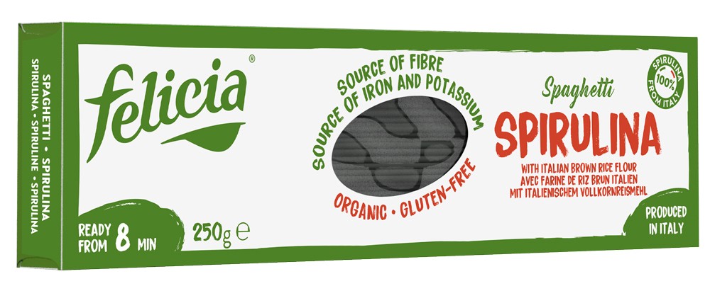 Spaghetti bio din faina de orez integral si spirulina, 250g Felicia