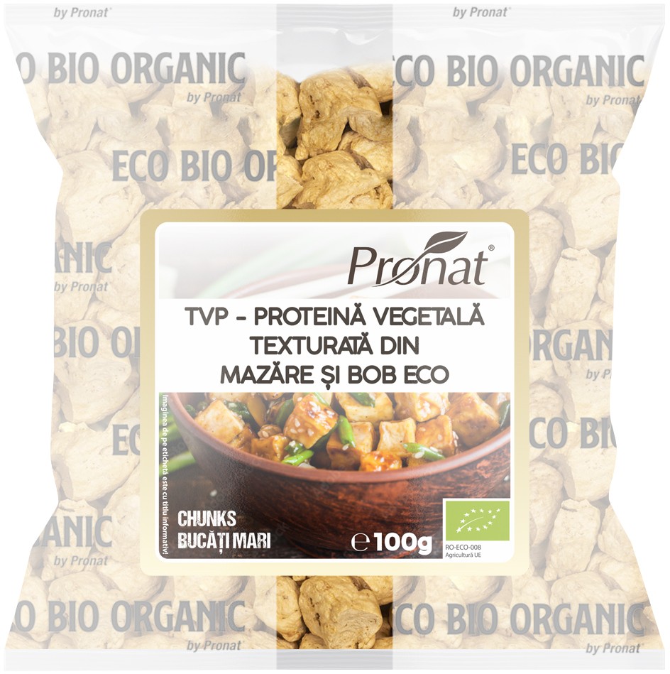 TVP – Proteina vegetala texturata din mazare si bob bio 100g, chunks (bucati mari), Pronat