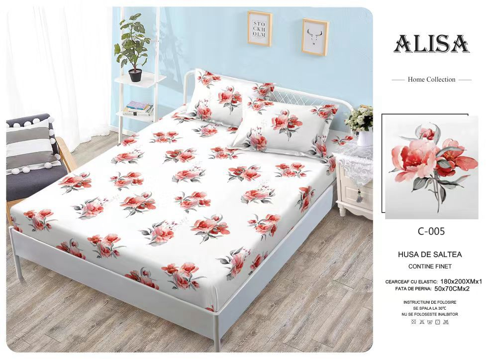 HUSA DE PAT cu elastic +2 FETE PERNA Husele de pat sunt ideale pentru orice tip de saltea. Materiale sunt foarte usor de intretinut cu conditia respectarii instructiunilor de ingrijire, intensitatea culorilor persistand chiar si dupa spalare frecventa Oricat de agitat esti in timpul somnului,cearceaful ramane la locului. Setul contine: Cearsaf cu elastic 180X200 cm 2 fete de perna-70X50 cm Compozitie material: bumbac 50%+PES 50% ATENTIE :Produsele sunt destinate saltelelor INTRE 140*200C