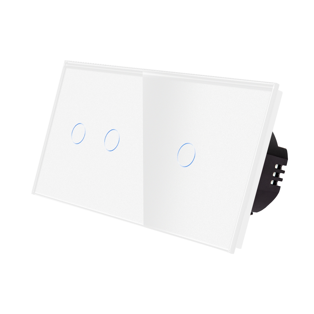 Intrerupator dublu + simplu cu touch din sticla Luxion. Brand-ul de intrerupatoare LUXION se diferentiaza prin design-ul compact, elegant si minimalist. Sunt versatile, iar senzorul tactil este foarte precis, identic cu cel al unui smartphone. Structura este durabila, iar intrerupatoarele nu se decoloreaza in timp. Este un produs practic, fabricat din materiale de calitate si rezistent in timp, ce ofera utilitate si confort casei tale.