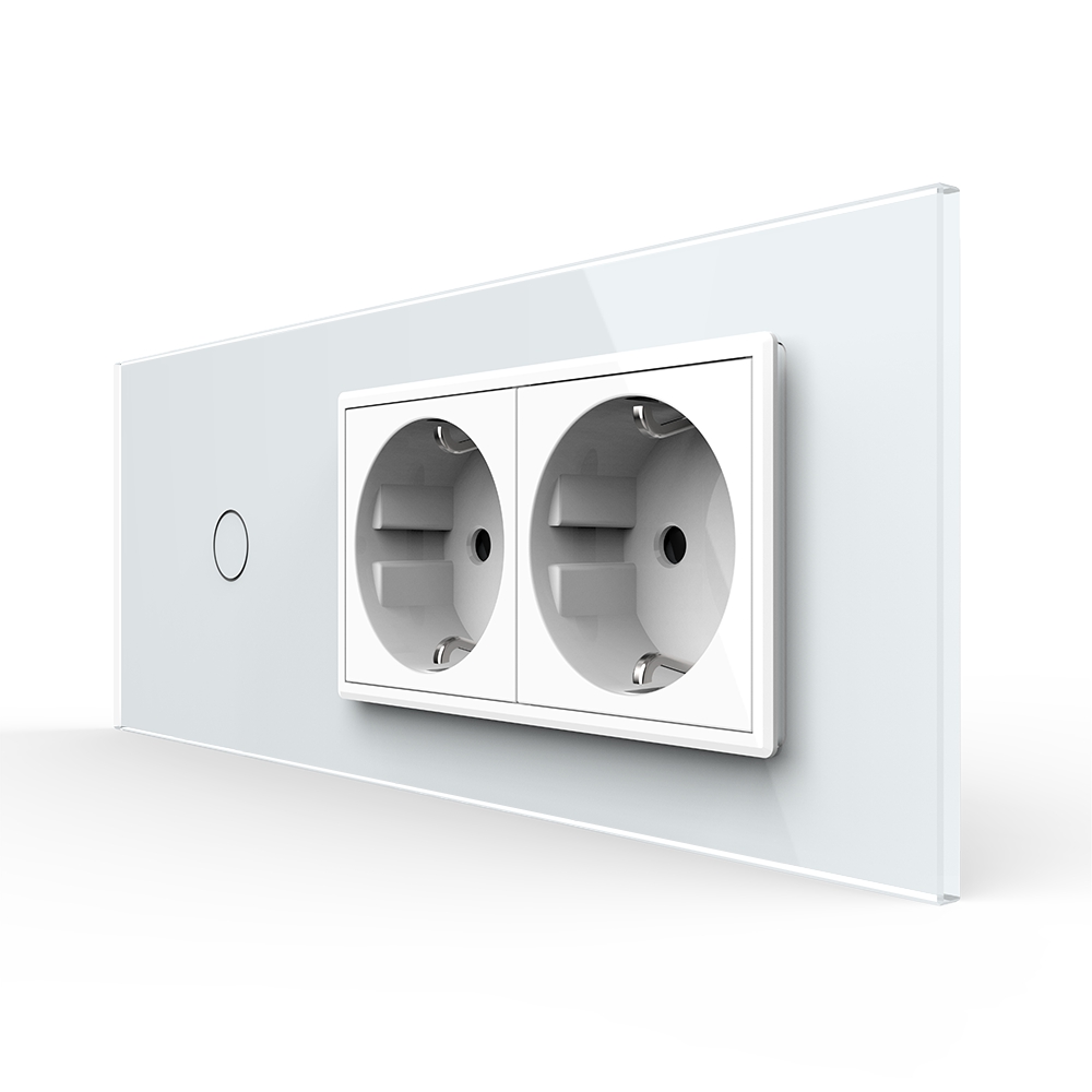 Intrerupator simplu + doua prize Livolo din sticla, standard italian, cu 6 module, din sticla crystal securizata, termorezistenta, compatibil doar cu modulele Livolo. Este rezistent la zgarieturi, umezeala, praf si ofera casei tale un plus de eleganta si rafinament.