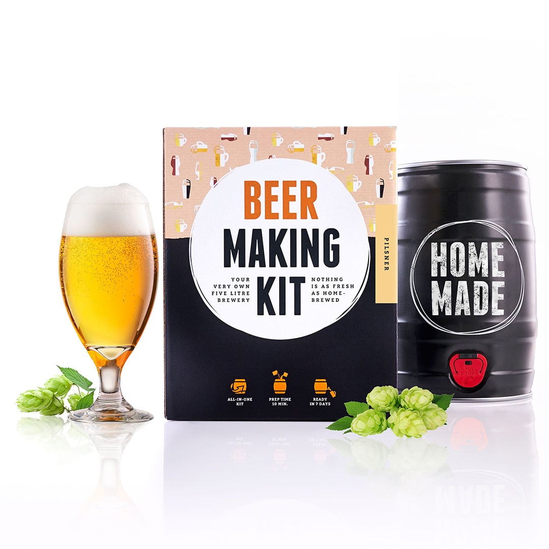 Setul pentru berea de casă – Pilsner este un cadou minunat pentru orice iubitor de bere. Cu produsele de calitate din set (selectate și ambalate în inima Germaniei), oricine poate pregăti 5 litri de bere blondă de casă – Pilsner, fără niciun fel de dificultate.