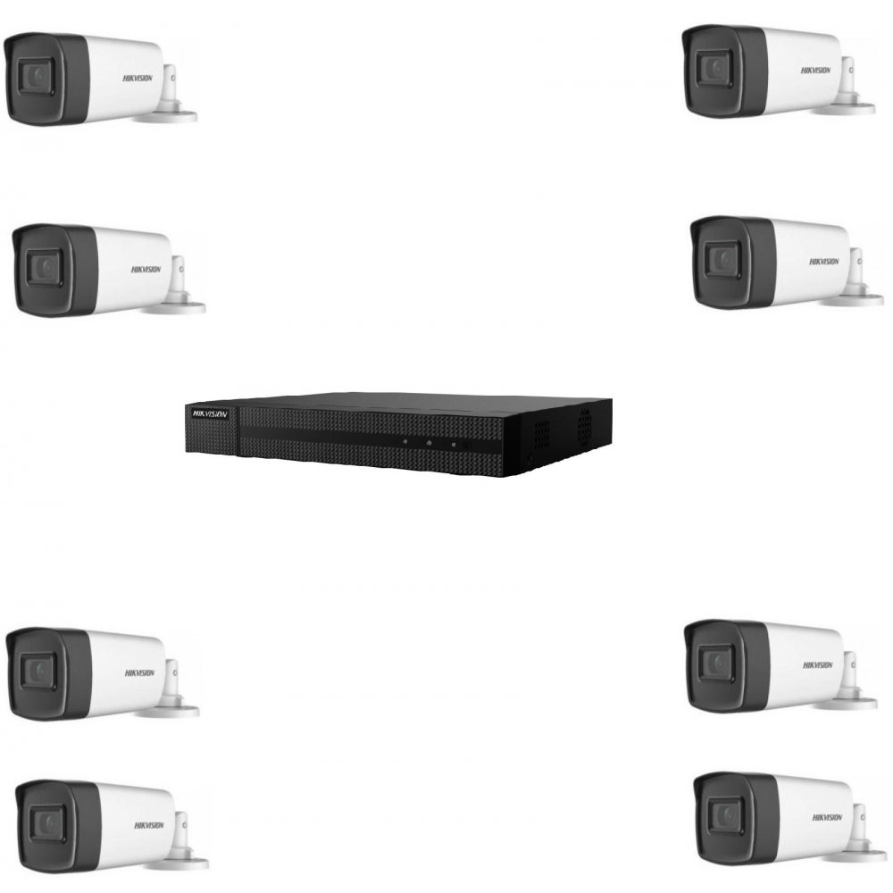 Kit 8 camere de supraveghere Hikvision bullet, 5 Megapixel, infrarosu 40m, microfon integrat si DVR 8 canale