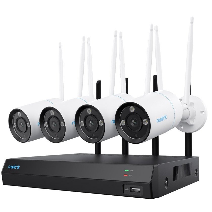 Sistem supraveghere exterior WiFi Reolink NVS12-8MB4W, 4 camere, 4K, IR 30 m, microfon si difuzor, vizualizare de pe telefon, HDD 2TB