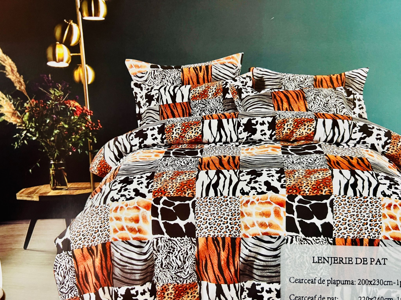 LENJERIE SET COMPLET – 4 PIESE Setul conține: – cearceaf pentru pat 200x220cm – cearceaf pentru pilota 180x220cm – două fețe de pernă 50x70cm Cearceaful pentru pilotă se închide cu fermoar, iar fețele de pernă sunt petrecute parte peste parte suficient astfel încât perna să nu iasă din fața de pernă. Fețele de pernă pot fi diferite față de poza de prezentare, în funcție de cum este cro